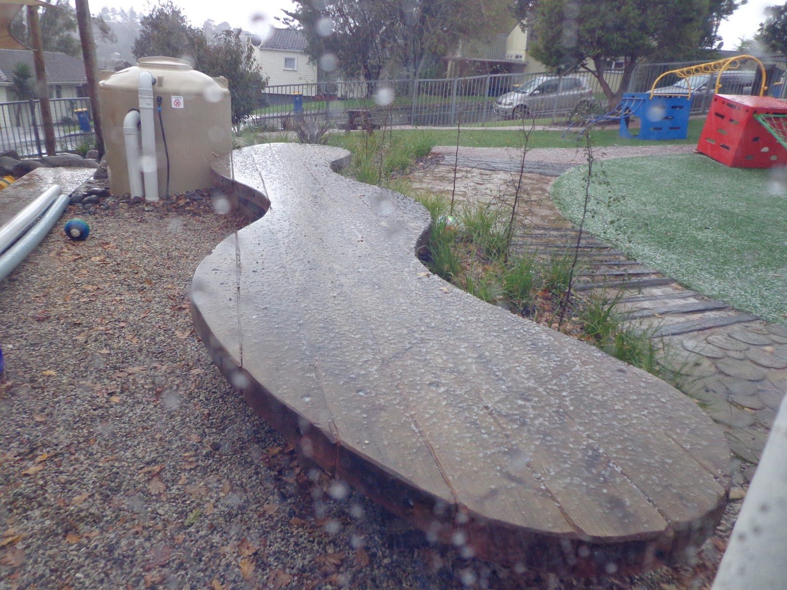Then of course we had the official ceremonial speeches and ribbon cutting. Dale took the opportunity to acknowledge the Dan our landscape builder and his team for their wonderful work making our outdoor environment so beautiful and a place for children to investigate and explore and learn. Garth, the General Manager of the Northern Auckland Kindergarten Association cut the ribbon and everyone walked through the archway and walked the path to open our new environment!